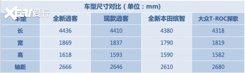 作为换代车型,全新逍客车身尺寸方面也全面升级。车身宽度增加了32mm,长度增加了35mm,高度增加了25mm,轴距也增加20mm。新车长宽高分别达到了4436/1869/1618mm,轴距2666mm。相比现款车型,车内空间会更有优势一些,在同级中也属于中大号。配合日产的大沙发,全新逍客的乘坐舒适度无疑会更好。